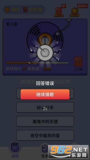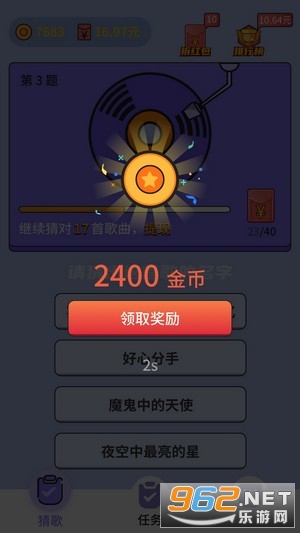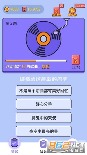 《懒人猜歌红包版》是一款非常给力的听歌猜歌赚钱软件,在这里用户可以体验一边玩听歌猜歌游戏一边赚红包的快乐体验,福利好,赚钱容易,提现也方便,感兴趣的朋友还在等什么?快来962下载吧!