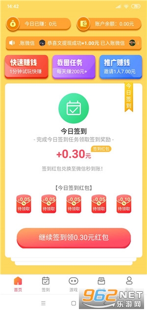 2、每日签到领现金,连续签到天天都有丰厚的奖励,签到红包兑换至秒到账