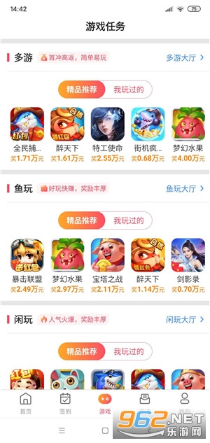 3、喵爱玩还有海量游戏任务,棋牌、手游、休闲、益智应有尽有,让每个朋友都能轻松拿手机赚钱