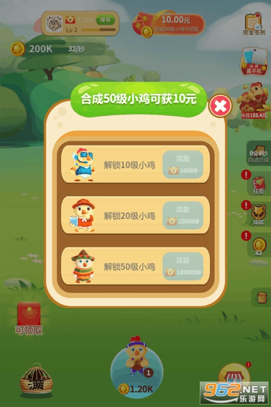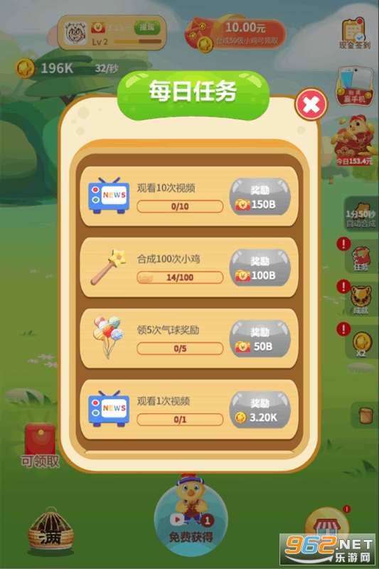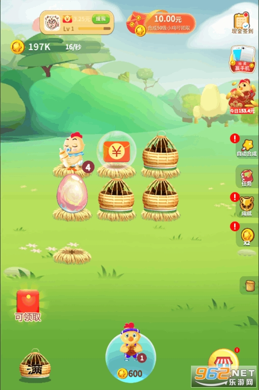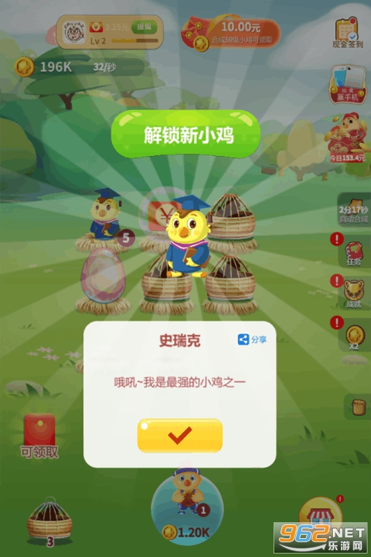 非常有趣的一款非常有趣的网赚休闲小游戏,玩家在游戏中养成小鸡进行赚钱,超多任务等你来完成,解锁各种不同特色的小鸡,获取丰厚的奖励吧!