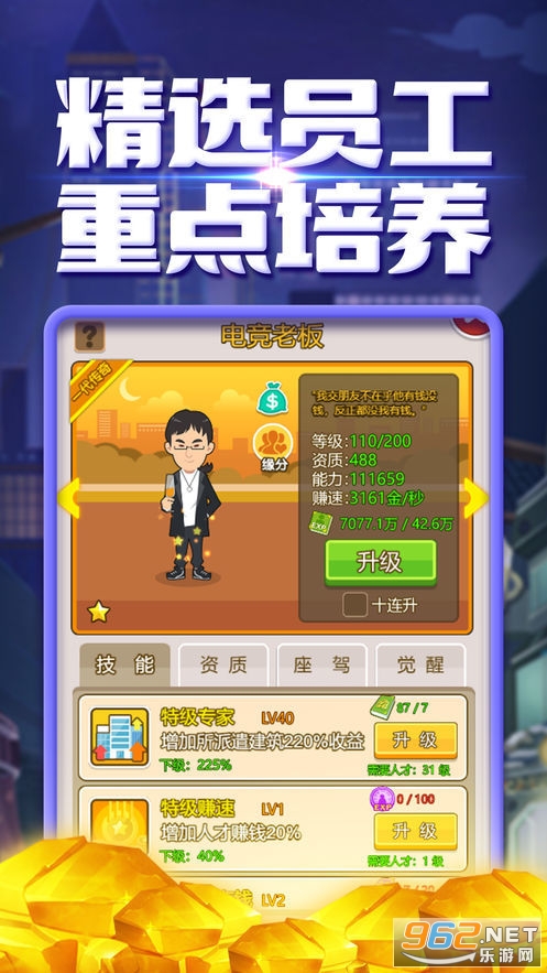 非常有趣的一款模拟经营类的休闲游戏,玩家在游戏中挂机赚取收益,不断的升级你的建筑,提高你的生产技术,自己管理培养好你的公司,快来下载吧!