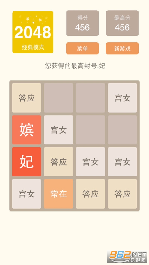 3、从紫禁城里的小宫女开始,滑动屏幕合并相同的人物,晋级皇后并不是最终结果。