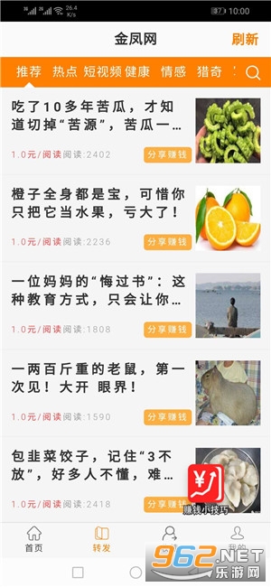 1、转发金凤网app内的任意文章到被阅读就有钱,坐等收益无需投资,轻松赚零花钱