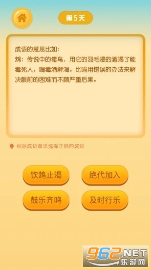 3、游戏玩法有趣,正确答题后可以查看成语的意思,还能教读。