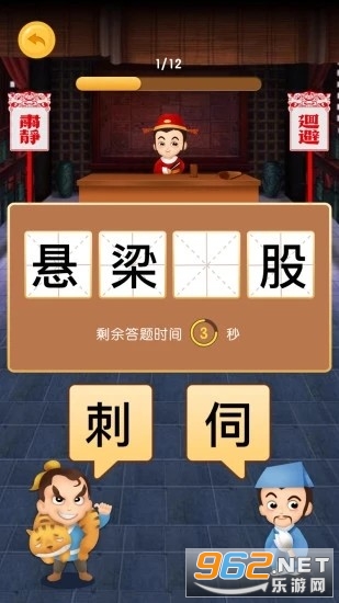 2、玩家扮演官员在台上选择正确的字,四字成语里也有生僻词。
