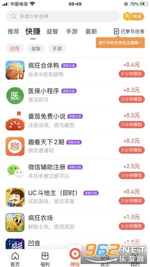 3、蛋咖赚钱上面大多是以游戏试玩为主,如果你对游戏试玩赚钱不感兴趣,另外还有u额度文章、天天签到、应用下载等任务也可以赚钱,赚钱的方法很多,就怕你不肯动手