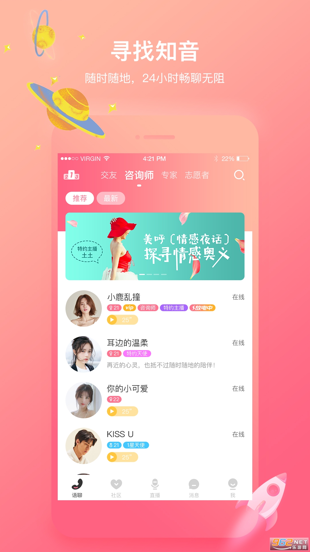 情感咨询,不看颜值听言值,在声音的世界,放肆嗨聊!