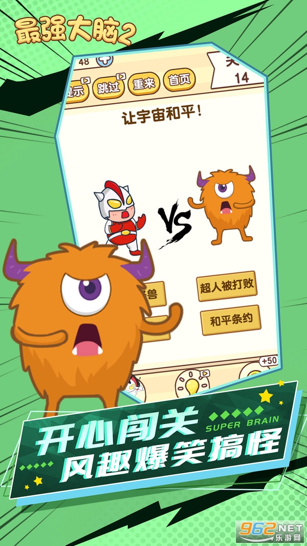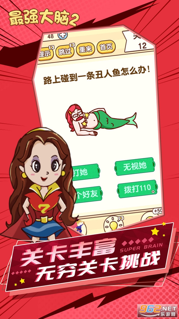 2、每个关卡都有新问题,搭配漫画风格的配图,带来欢乐游戏氛围。