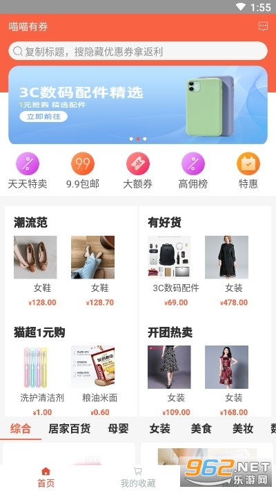 1、喵喵有券app海量优惠券全网搜罗一键轻松领;