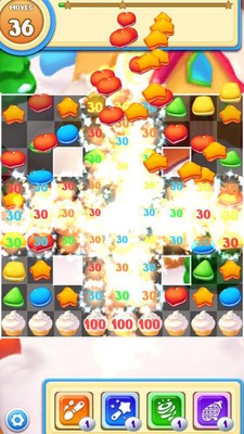 一款饼干爆炸消除游戏,游戏核心是一款消除游戏,每当玩家触发到爆炸条件就会得到非常高的分数。为了避免玩家脸黑游戏中,游戏中还有许多辅助道具帮助玩家进行游戏,同时游戏关卡也非常丰富。