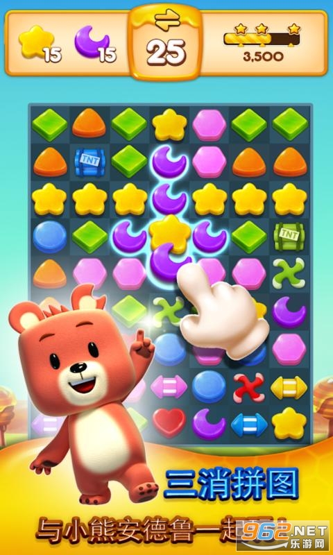 一款可爱的三消游戏。可爱小熊安德鲁回来啦!它要想要和它的蜜蜂朋友们一起收集蜂蜜,快来帮助它吧!游戏玩法简单,只需匹配3个及3个以上的方块就可以进行消除,匹配的方块数量越多还可以触发更炫酷的特效和实用道具哦。快来和可爱的小熊一起进行轻松休闲的消除游戏吧~