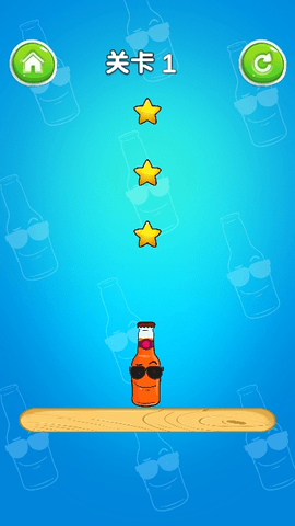 1、在关卡中学会利用汽水瓶来消灭星星,观察障碍物和木板的摆放,利用物理技巧来实现。