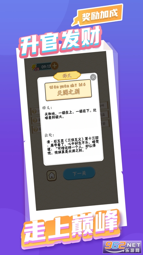 1、这是一款通过游戏的方式提供成语学习的娱乐神器,旨在让玩家在轻松的氛围中学习成语;