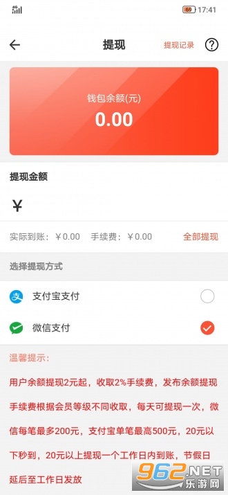 满2元即可申请提现至或支付宝,提现金额20元以下秒到账,20元以上一个工作日内到账。