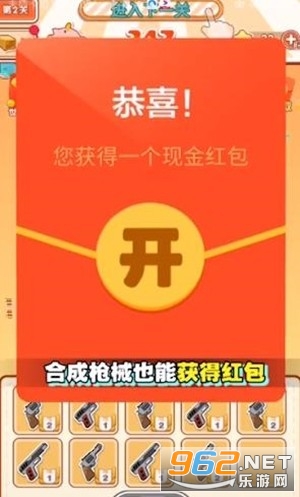 《超级合体枪红包版》是一款能赚钱的合成小游戏,在这款游戏中,玩家通过合成枪械进行游戏,将两个享同等级的枪支合成成为更高等级即可,而且福利和奖励也会提高,感兴趣的朋友欢迎来962下载吧!