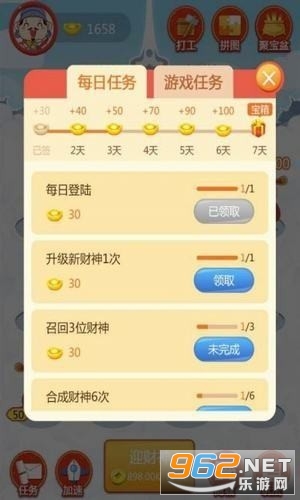 天天财神是一款全新的网赚软件,天天财神app合成财神爷就可以赚钱,天天财神app每日登陆游戏还有奖励,你可以合成更高等级的财神爷,欢乐无限!