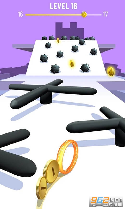 3、沿着道路滚动你的金币,确保它准确地落入槽中。