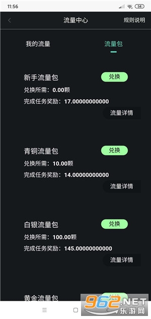 1、流量包分为7个等级,分别为新手流量包、青铜流量包、白银流量包、黄金流量包、钻石流量包、至尊流量包、王者流量包。