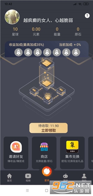 能量:可以在商店兑换星球(比例:300能量=1个星球),星球可以产元素,元素可以兑换现金礼品