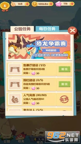 4、经营恐龙公园,收集各种各样的恐龙,打造全球最大的恐龙公园!