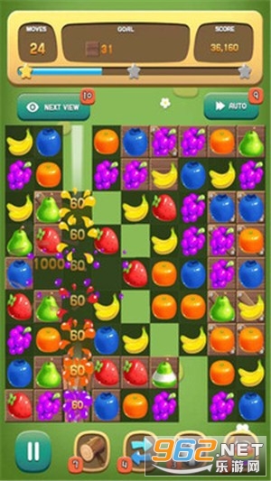 一款全新的水果消除类游戏,玩法和三消一样,大家将相同的水果排列成线就可以消除得分了哟,音乐也十分动听。
