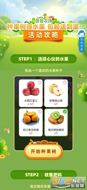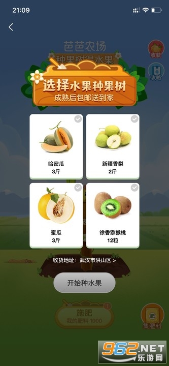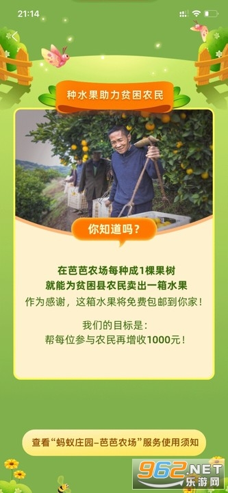 在芭芭农场每种成1棵果树就能为贫困县农民卖出一箱水果作为感谢,这箱水果将免费包邮到你家!