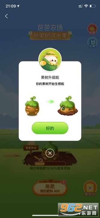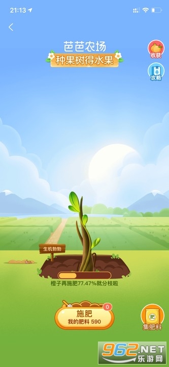 进入农场就会有属于自己的天地,每天开垦、种植,在一定时间内就会产生作物,作物能让经验条满格,从而升级农场,获得大量的阳光;