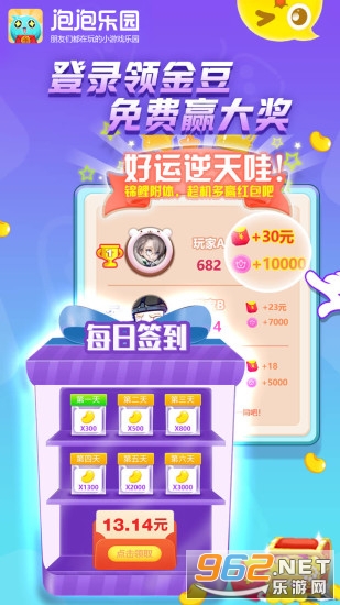 《泡泡乐园领红包》是一款非常好用的玩游戏赚钱类的休闲游戏,提现轻轻松松秒到账,玩家只需要选择自己喜欢的小游戏进行试玩体验就赚到丰厚的红包现金,超多不同的热门小游戏,玩起来很过瘾。喜欢的话就快来下载吧!