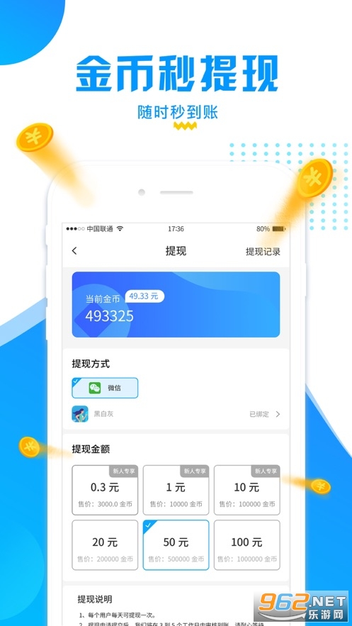 3、每个月累积,轻松到账,所有的金币都可以快速兑换成现金。