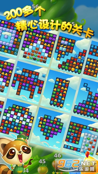 2、超过400个精彩有趣的游戏关卡.伴随各种不同的障碍,难度逐步升级,挑战你的极限!集齐金色豆荚、极限时间挑战、消除指定物品... 玩法超丰富!