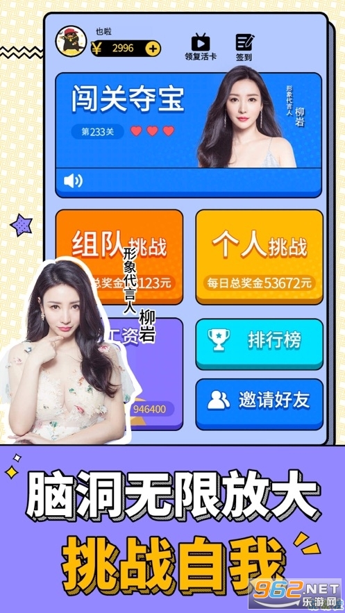超大脑洞挑战趣味问题,运用头脑赢得奖励。让人乐在其中。挑战答题关卡赢得大奖,冲击更高的排名,能够瓜分巨额的红包奖励。福利也非常多,只要你每天都参与答题,就能获得很多收入,绝对能够给你带来惊喜。还能与好友一起组队挑战,合作可以更加轻松地完成各种谜题,带来大量的回馈。