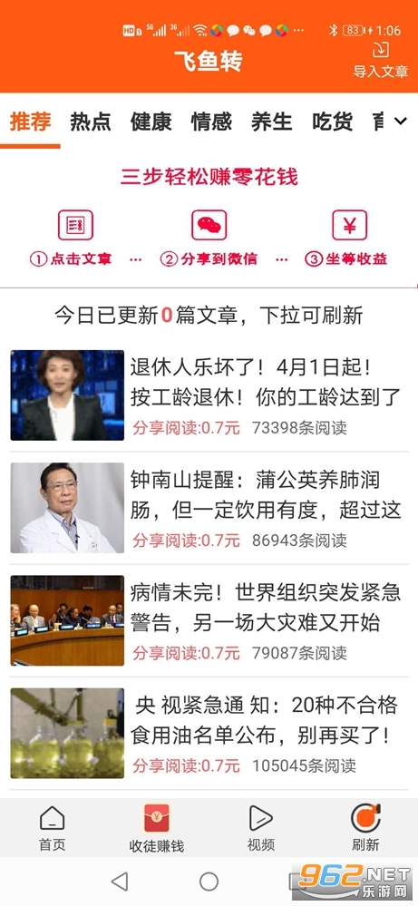 飞鱼转APP,是一款分享文章的赚钱软件,文章内容有吸引力,一键发送给好友每次阅读都有赏金,收益高,提现到账快速,转客们的福利!