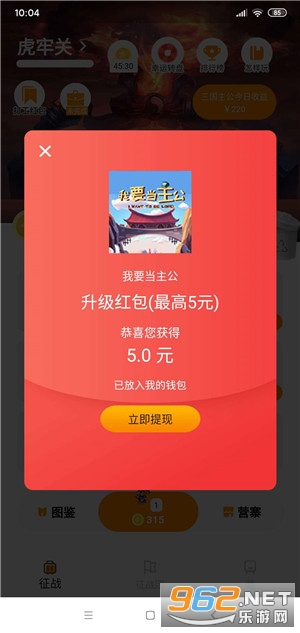 4、当等级达到38级时,有几率获得三国主公人物,永久获得每日超过200元现金分红;