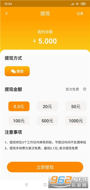7、我要当主公首次满0.3元可提现至支付宝,后续为20元,到账迅速。