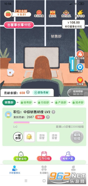 5、每个公司分为五个 部门,解锁所有部分并升级到最高等级,即可申请成为该公司董事长享受每日分红。晋升成功后可解锁下个公司进行历练
