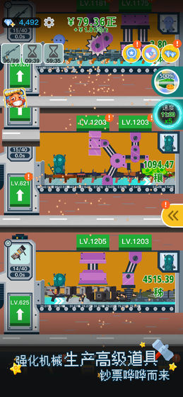 2、升级生产线的设备,需要消耗大量金币,但是能够获取更加高级的武器;