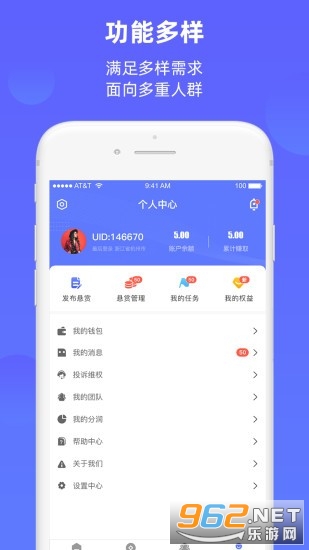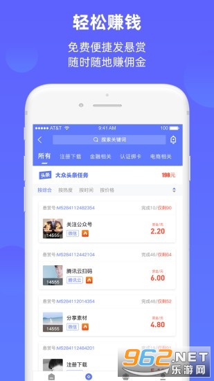 一款全新上线的赚钱app,这里每天都会为用户更新赚钱任务,门槛低,收益好,还能邀请好友参与分红,喜欢就来962体验体验吧!