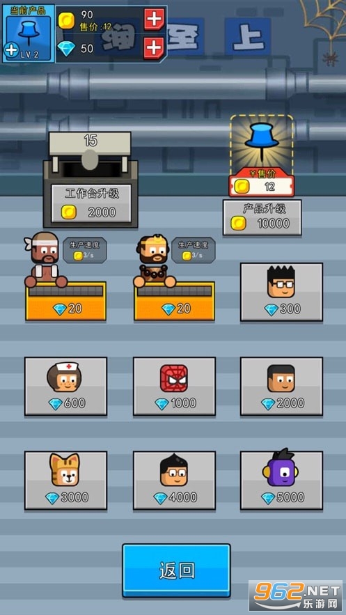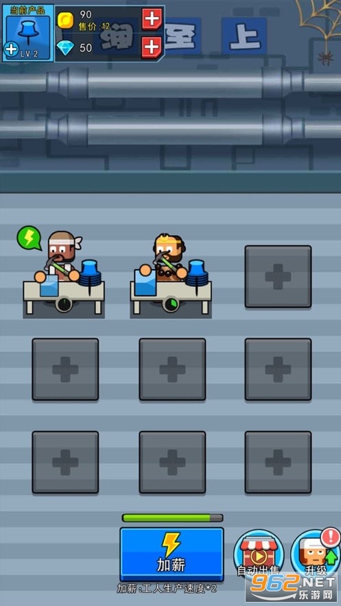 工人可以随时增加,但是每个工人都需要消耗钻石解锁,放置在不同的位置开始生产。