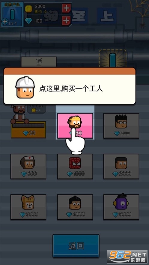 在游戏中,你需要购买工人赚钱