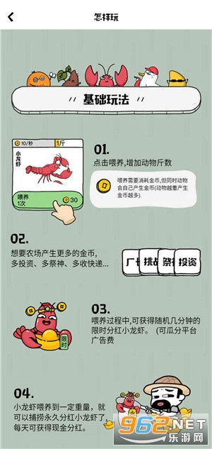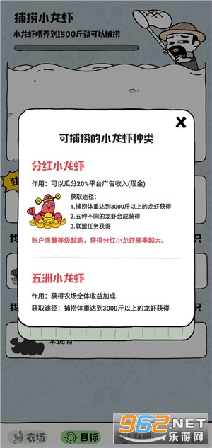《超级农场赚钱游戏》让各位玩家们在这款农场中喂养小动物开启赚钱,大家可以在这里轻松的体验到正规好玩的赚钱福利,通过超级农场喂养小龙虾来获取每日的红包奖励,满20提现,每天都能赚上一笔,下面一起加入这款超级农场开启你的赚钱之旅吧!
