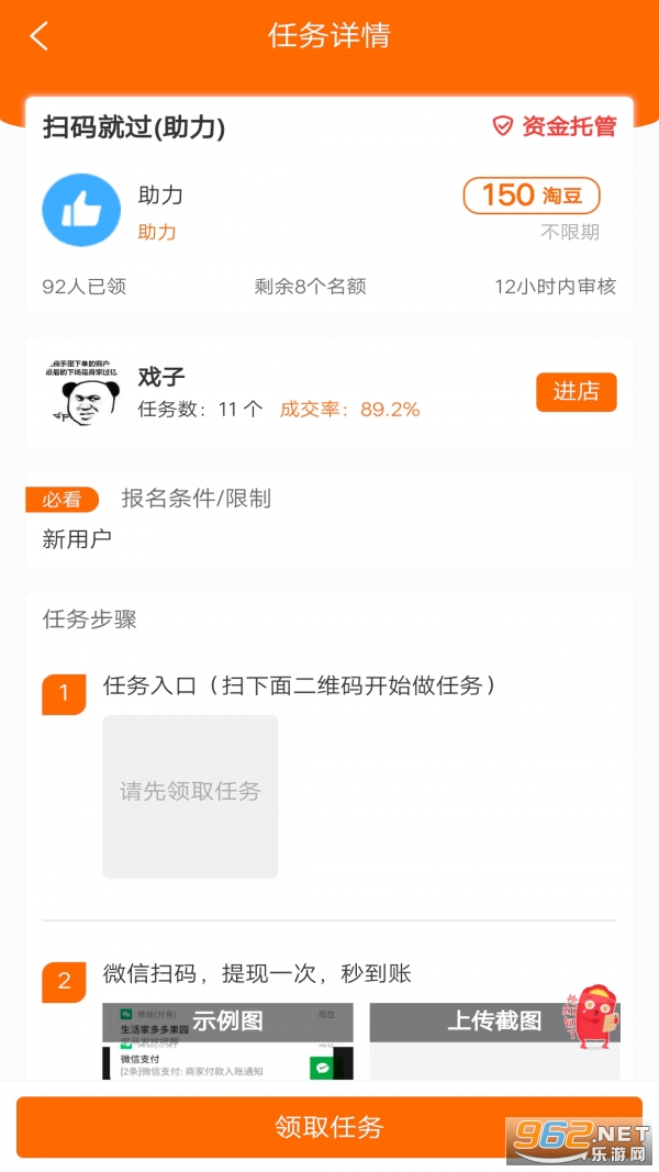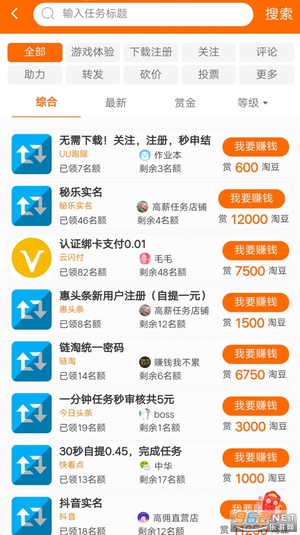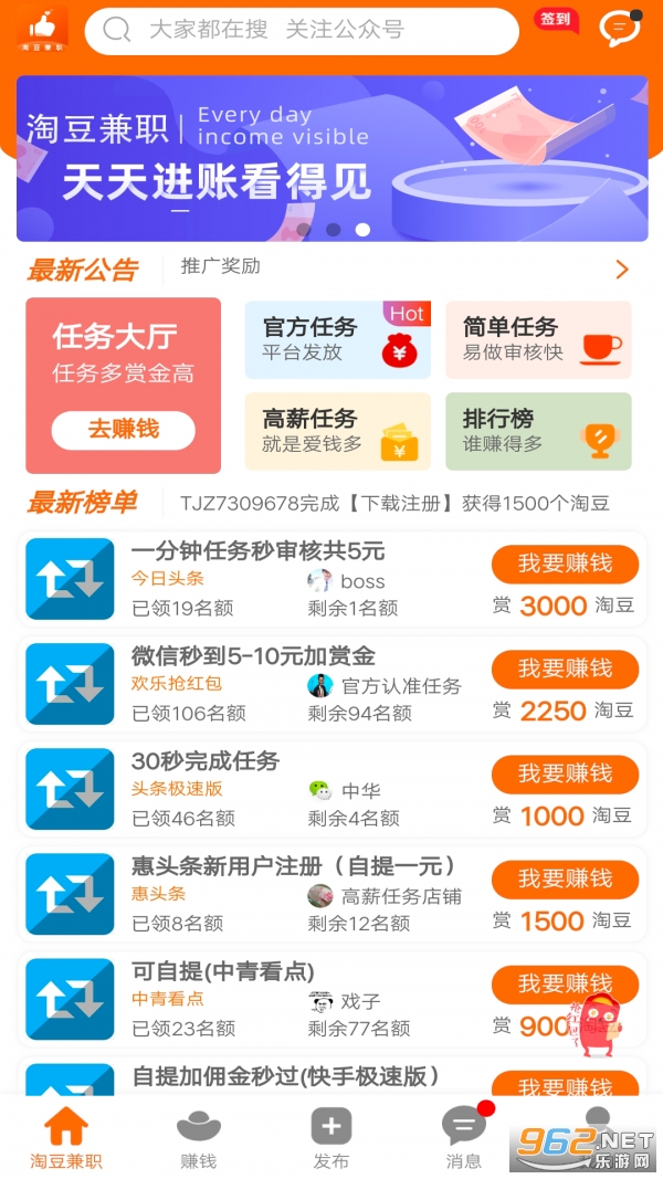 一款给力的手机赚钱软件,轻松的赚钱方式方法,按照平台的要求完成任务即可,门槛低,福利好,感兴趣就来962试试吧!