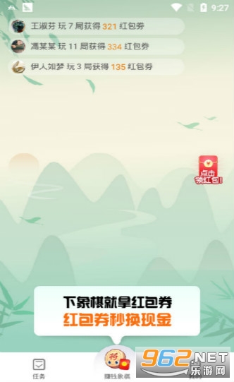 2、玩象棋就可以得现金红包奖励;
