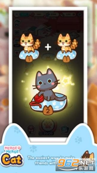 1、合并猫,你会得到一个全新的猫,给你的猫洗澡,打扮成你喜欢的样子。