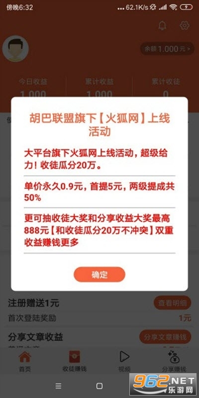 《火狐转》是一款阅读文章赚钱的软件,下载注册即可获得1元红包,转发单价0.9元,满5元即可提现,秒到账,不需要前期投入任何资金,来尝试下吧。