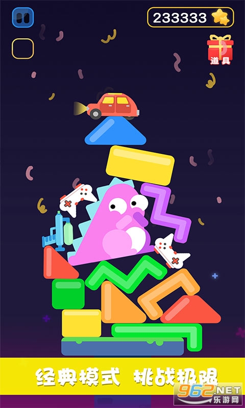 天天叠叠乐是一款休闲放置广告小游戏,玩家们在游戏中就是将这些积木给堆积起来,可能你们会遇到很多的瓶颈,由于这些积木的形状大小都不一样,所以说你们的挑战难度还是比较的高,尽量的发挥出你们空间想象能力来进行闯关,在这里还有道具可以帮助到你们进行清除哦。