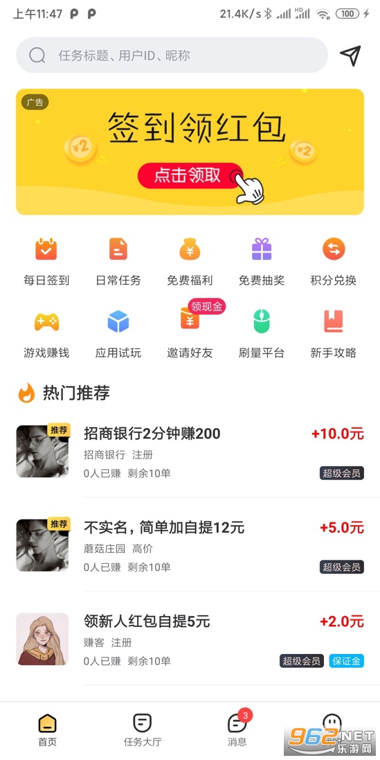 《乐悬赏app》让各位用户们能在这款乐悬赏app中体验到好玩趣味的红包任务,大家在这里可以做任务领红包,让玩家们能通过乐悬赏app来这里开启好玩趣味的红包福利,下面就是小编为大家带来的软件下载地址!