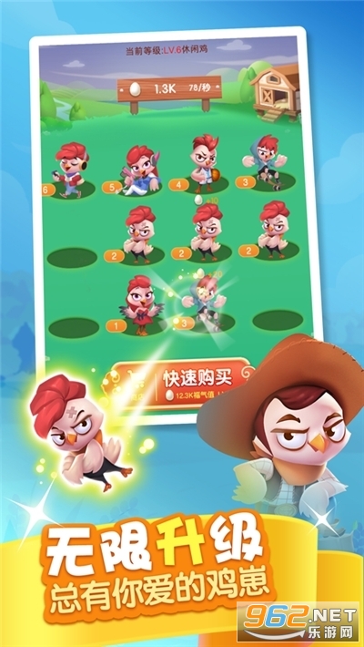 一款有趣的手机赚钱平台,简单的合成游戏模式,将两个相同等级的小鸡合成更高等级即可,收益福利也会翻倍,喜欢就来962试试吧!