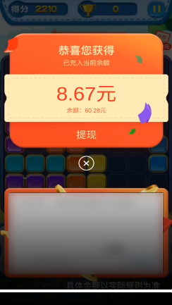 《俄罗斯方块消除红包版》是一款非常经典的俄罗斯方块消除小游戏,很容易上手,游戏的规则一如从前,将那些方块放到你认为对的地方,将空白行列占满就能消除,玩法很简单,而且这款游戏里面有红包哦,你玩的越多得到的红包就越多。