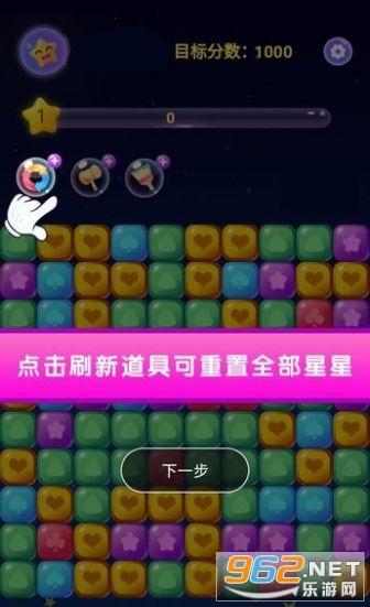1、经典的消除玩法,相同颜色的星星能够消除,一次性消除一片奖励更多;