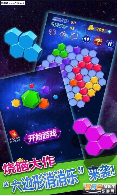 六边形的纵横变换消除,创意满满的智力大考验,六边形消消乐,兼具魔法方块的有棱有角和六边形的变化无穷。华丽的消除特效,由简入难的递增模式,益智耐玩的功能设置,简单有趣,引人入胜。